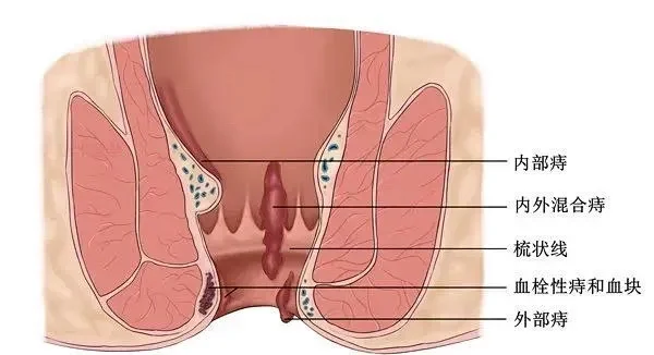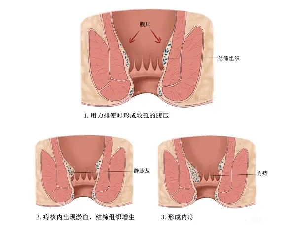 在肛门直肠附近分布着两张血管网,分别是直肠下端的直肠静脉丛和肛门缘的肛门静脉丛。这两个静脉丛就好比是两个气球,正常情况下它们承担了肛门直肠局部的静脉血回收,但在一些因素的作用下,它们会变大,前者形成了内痔,后者形成了外痔。