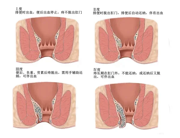 3度:少有便血,排便或久站、负重时痔脱出,需手辅助才能回纳;